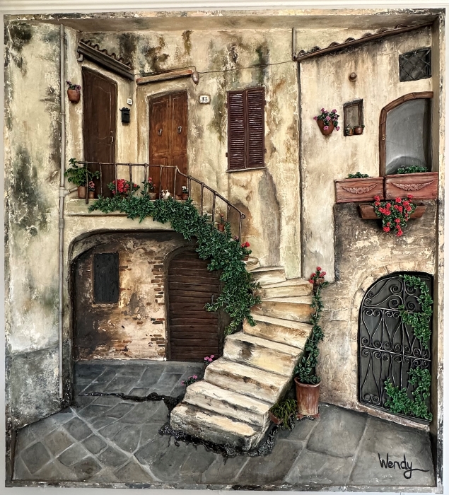 3 D Art created with cement, Acrylic paint and various other mediums.